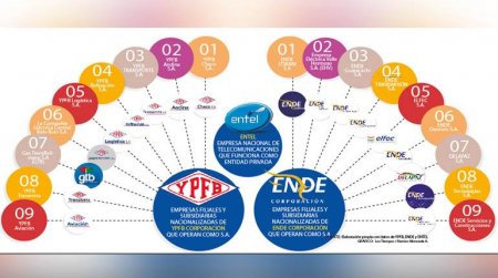 Las 18 empresas nacionalizadas por medio de YPFB Corporación y ENDE Corporación operan...