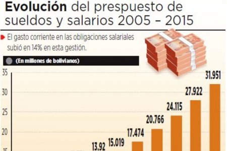 El gasto corriente en sueldos y salarios subió este año en 14% en relación con 2014, lo que en un futuro será insostenible para la economía boliviana...